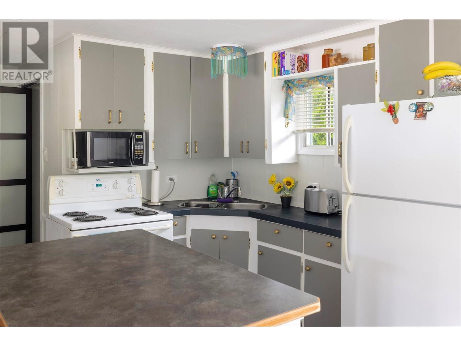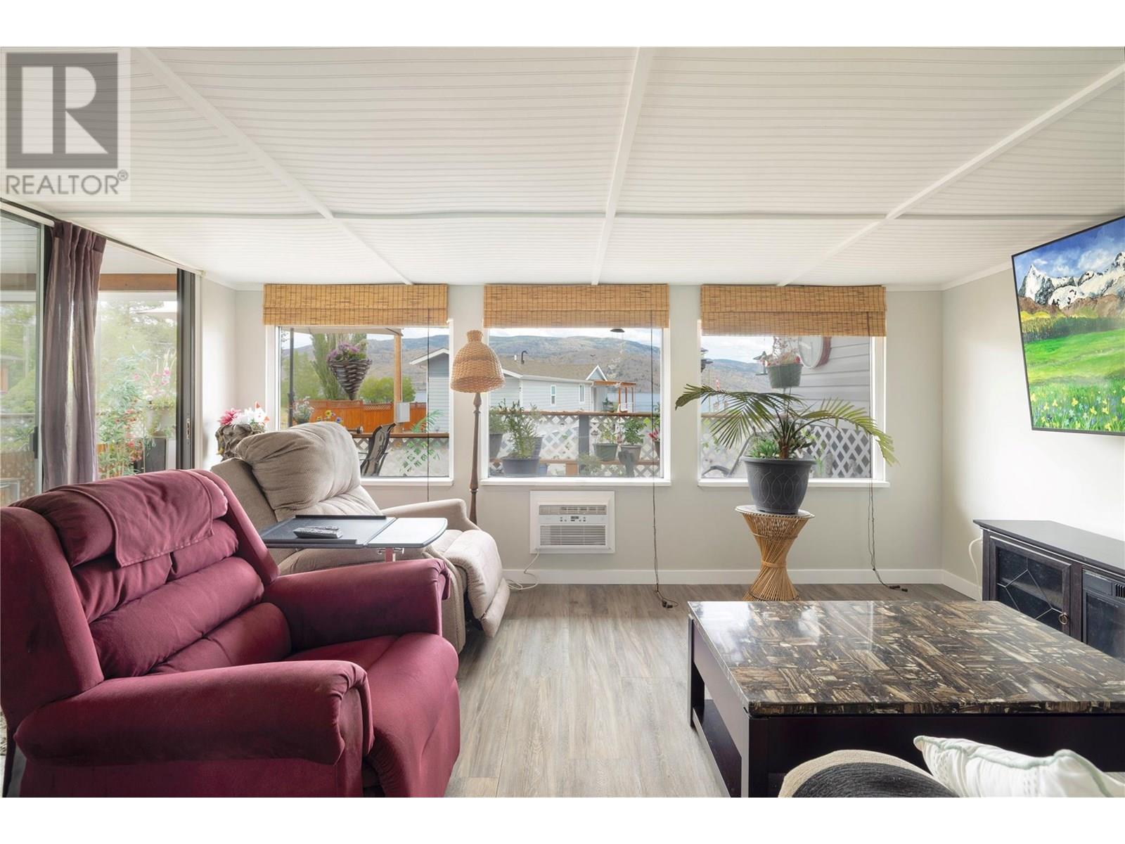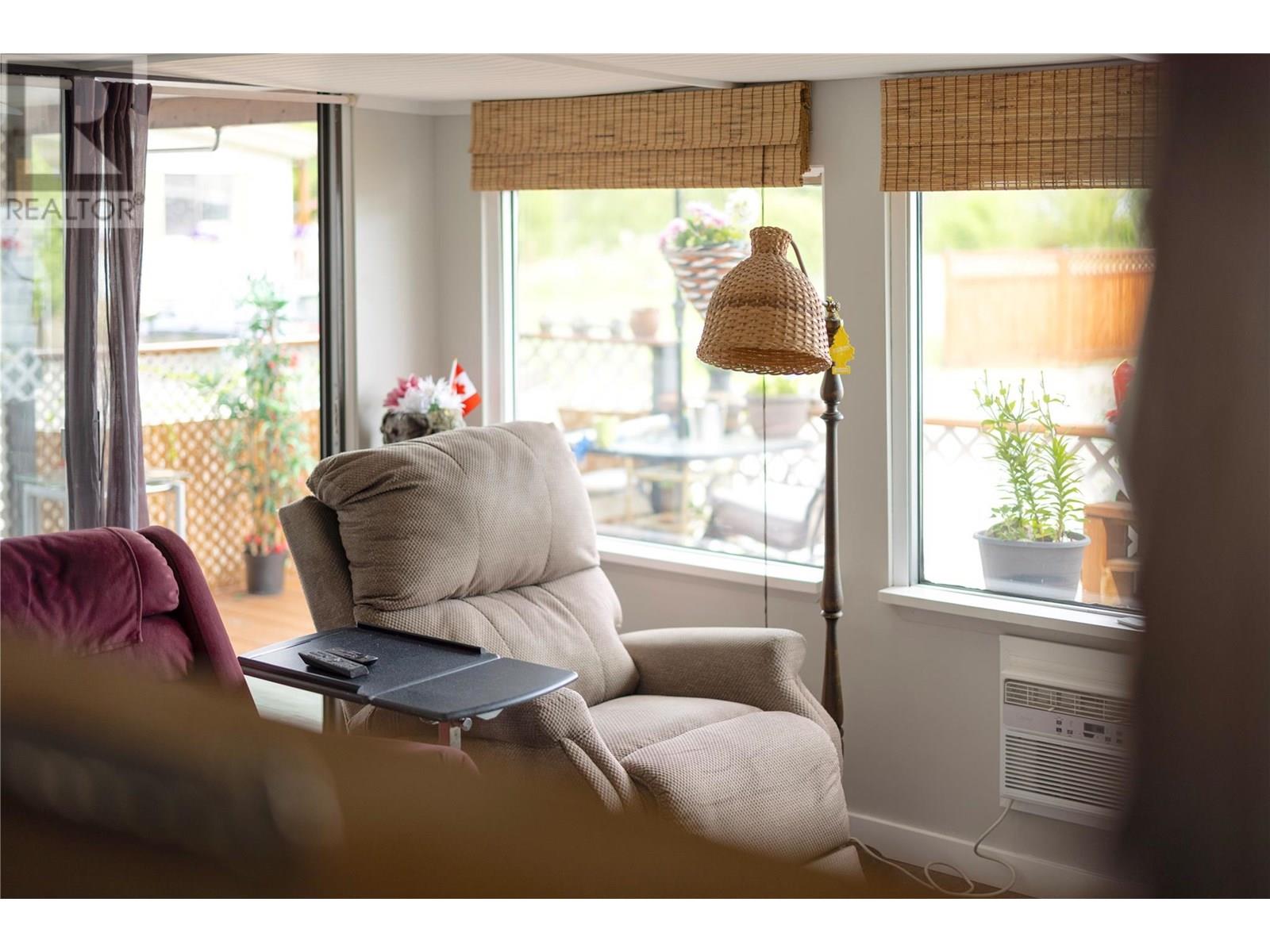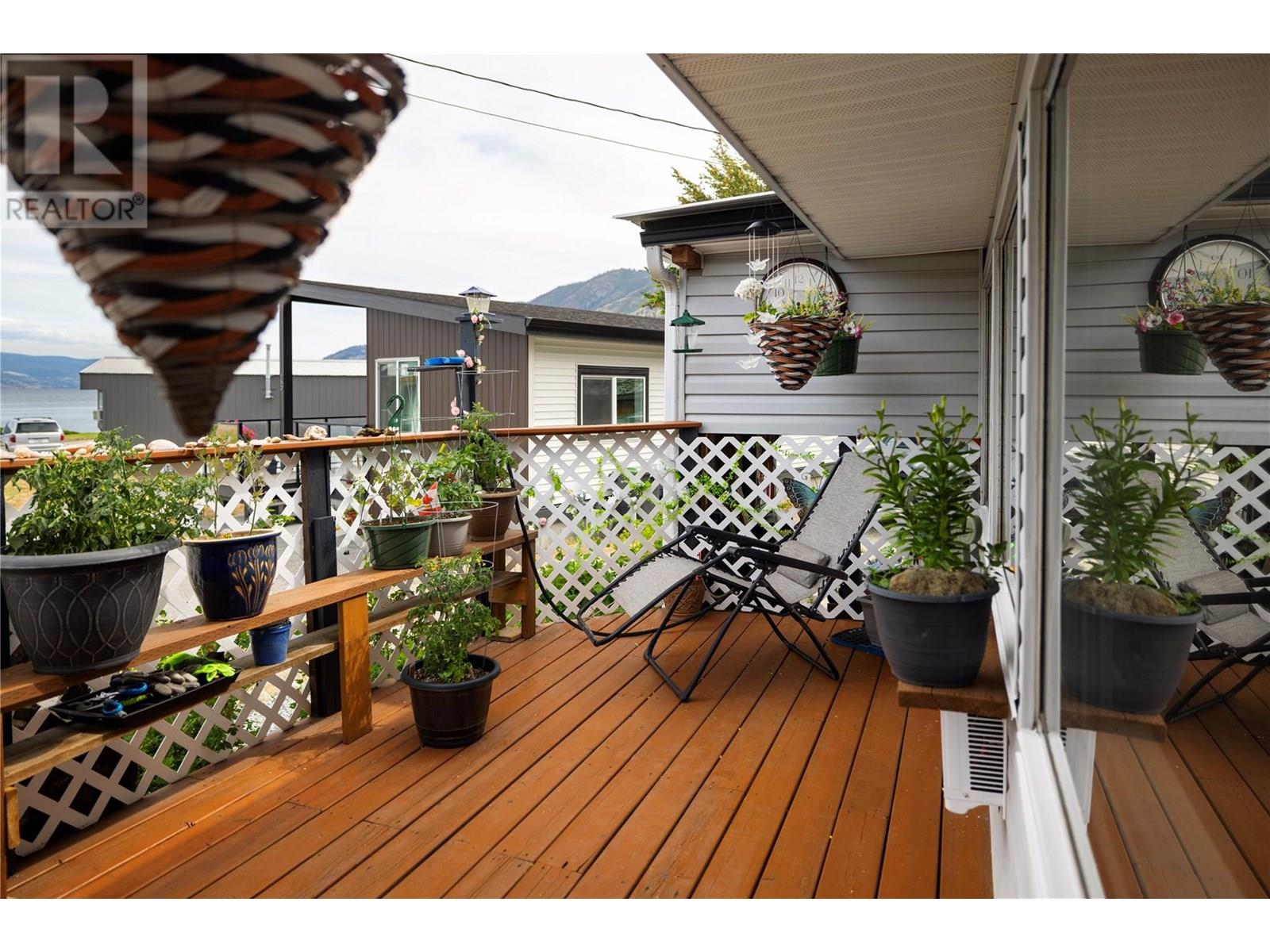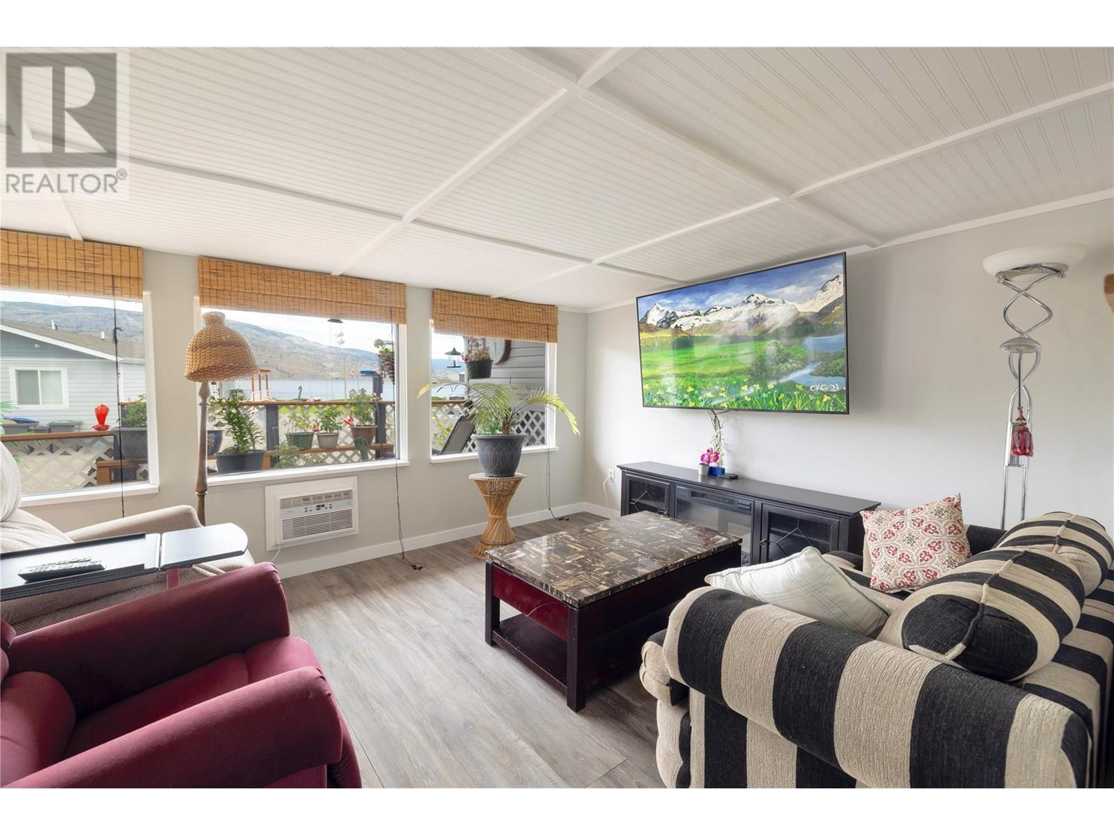 Seller says it's time to move! Priced has been lowered and will consider all reasonable offers. Semi-Lakeshore 55+ Home with Spectacular Lake Views in Peachland Wake up to stunning lake and mountain views from this well-maintained, 2-bedroom home in one of Peachland’s most desirable 55+ communities, just steps from Antlers Beach and a short walk to Hardy Falls. Enjoy an open-concept layout with a bright living and kitchen area that flows into a spacious family room and out to a 23-foot covered deck—perfect for year-round enjoyment. Recent (2022) upgrades include : Fully renovated bathroom with wheelchair-accessible shower, raised toilet, and Moen fixtures. Vendor financing available for a qualified buyer. New high-efficiency gas furnace (2023) and A/C and hot water tank. Professional roof maintenance and repairs. Stylish laminate flooring, and fresh interior paint. 23 foot exterior deck with sliding glass door to the living room, Covered entrance and newly added low-maintenance landscaping, Second bedroom is currently set up with a laundry/storage room but offers an easy transition back to a second bedroom. Located minutes from shops, wineries, restaurants, and hiking trails, this peaceful, pet-friendly park (1 dog or cat under 30 lbs, second pet with approval) offers an affordable seasonal home or a full time retreat. Move-in ready and full of charm—this lakeside retreat offers an unbeatable Okanagan lifestyle. Vendor financing available for a qualified buyer (id:2469)